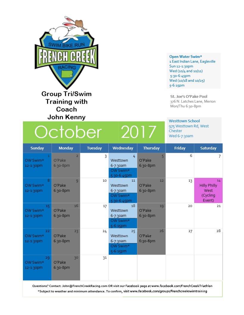 Subject: '18 French Creek Tri Registration now OPEN // Fall Swim Schedule