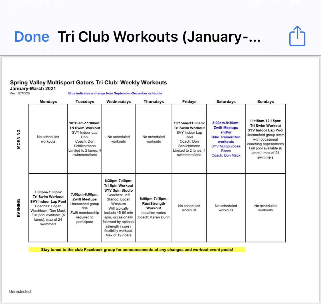 GATORS WEEKLY WORKOUT CALENDAR (January - March 2021)
