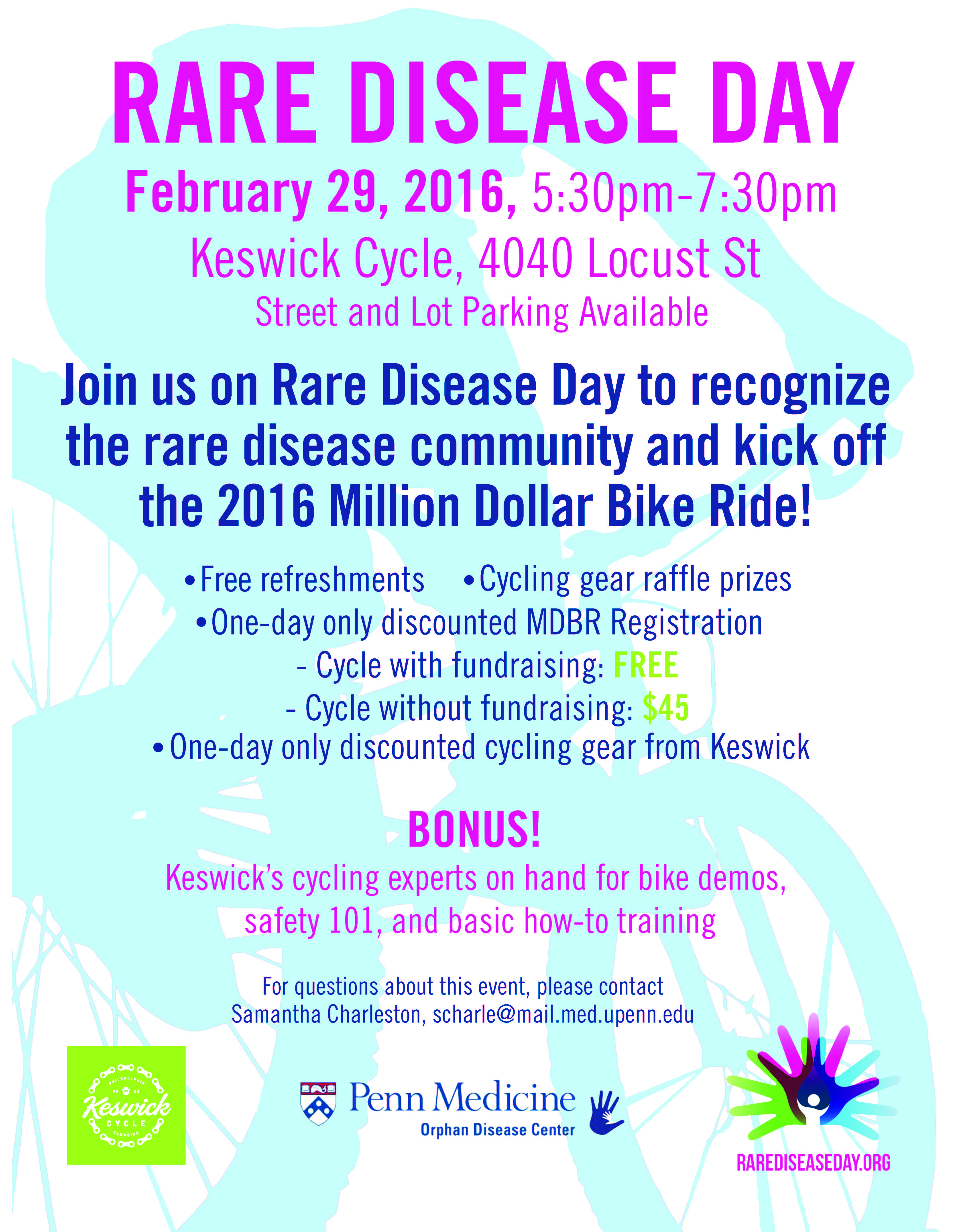 I wanted to let anyone that was considering participating as a rider in this event that Keswick Cycle is having an event on February 29th in honor of Rare Disease Day.