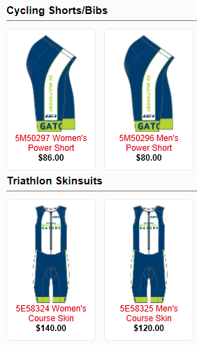 Since you changed up the design this year, any of the women’s styles that were not on your initial order will need to have new layouts created so I have to charge for the new set ups… the Women’s Power Short and Women’s Course Tri Skin are the only new styles that I had to do that for.